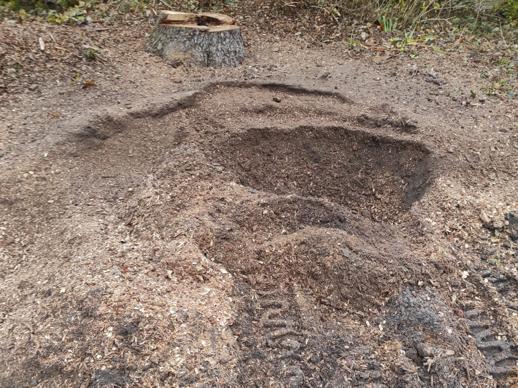 Nach einer Baum- oder Strauchfällung bleiben die Wurzeln und ein Stück des Stammes sichtbar und der Platz kann nicht genutzt werden. Dazu kommt, dass Sträucher zum Wiederaustrieb neigen.